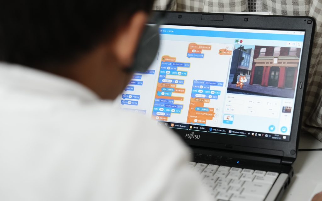 Scratch(スクラッチ)は、アメリカ・マサチューセッツ工科大学のメディアラボが無償で公開しているビジュアルプログラミング言語。画面上のブロックをつなぎ合わせてプログラムを作ります。 主にマウスを使用するため、キーボード操作に不慣れな小学生でも利用することができます。